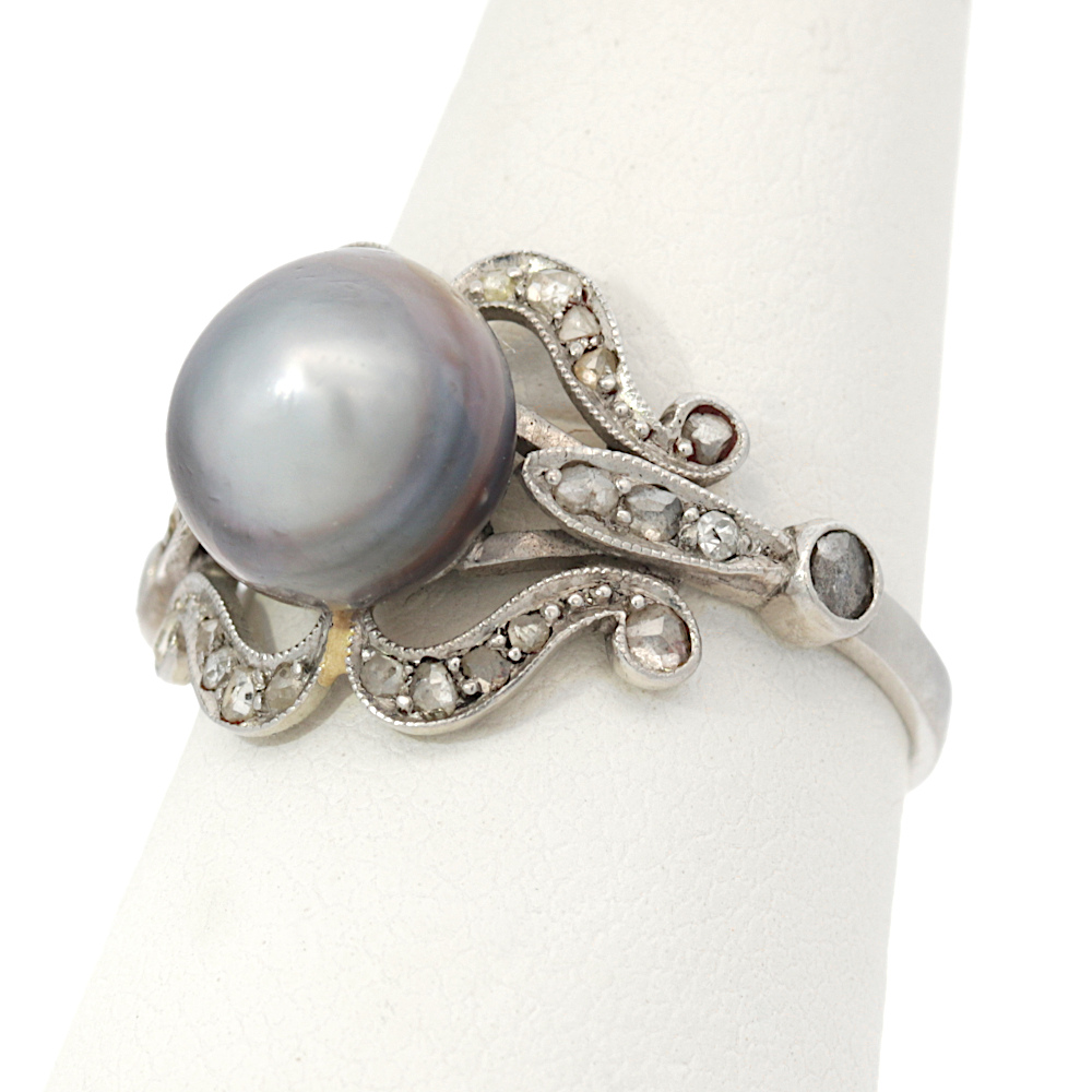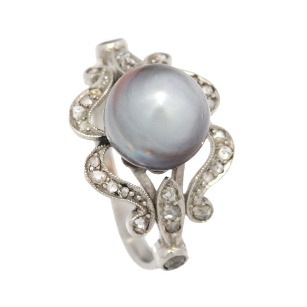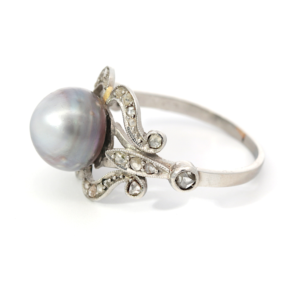 Antikring mit Perle und Altschliffdiamanten