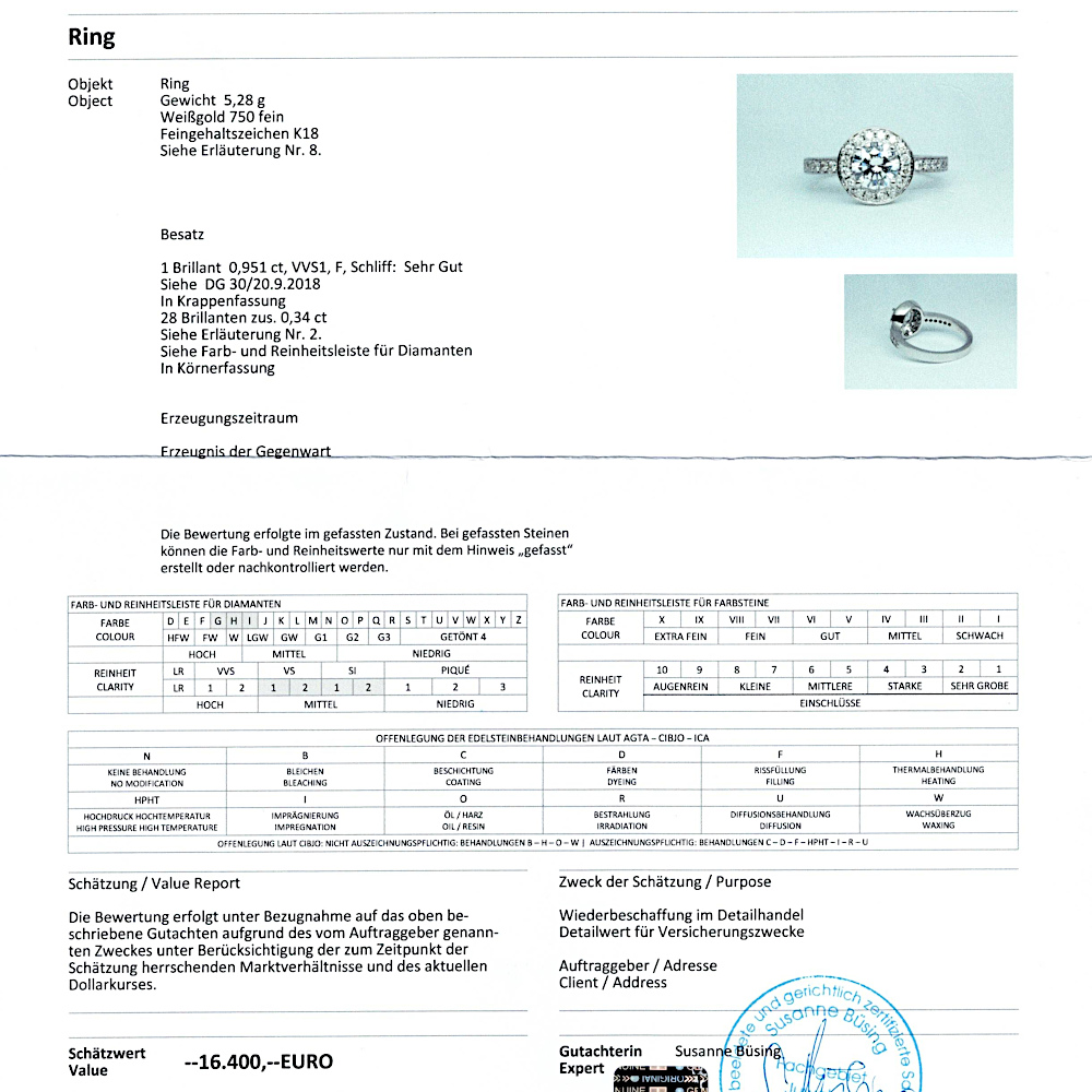 | Bemerkungen: | 1 x Brillant 0,951ct; |